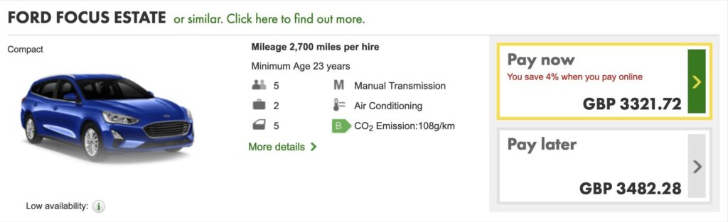 His usual car rental is from a reputable firm which he collects from Heathrow Airport. He pays £3321.72 per month including unlimited mileage and insurance (correct as of 27th April 2022).